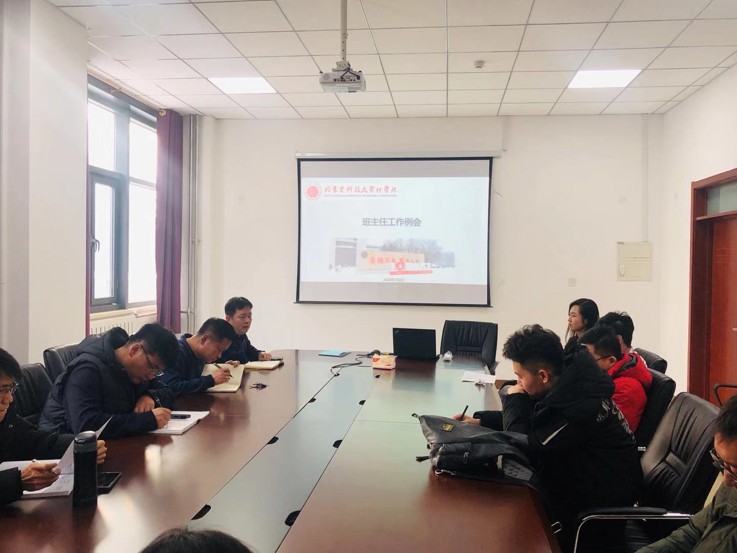 2020年1月2日下午3:30,304永利集团在明德楼E206会议室召开班主任工作例会,党总支副书记、副院长罗宁主持会议,学院全体班主任出席会议。