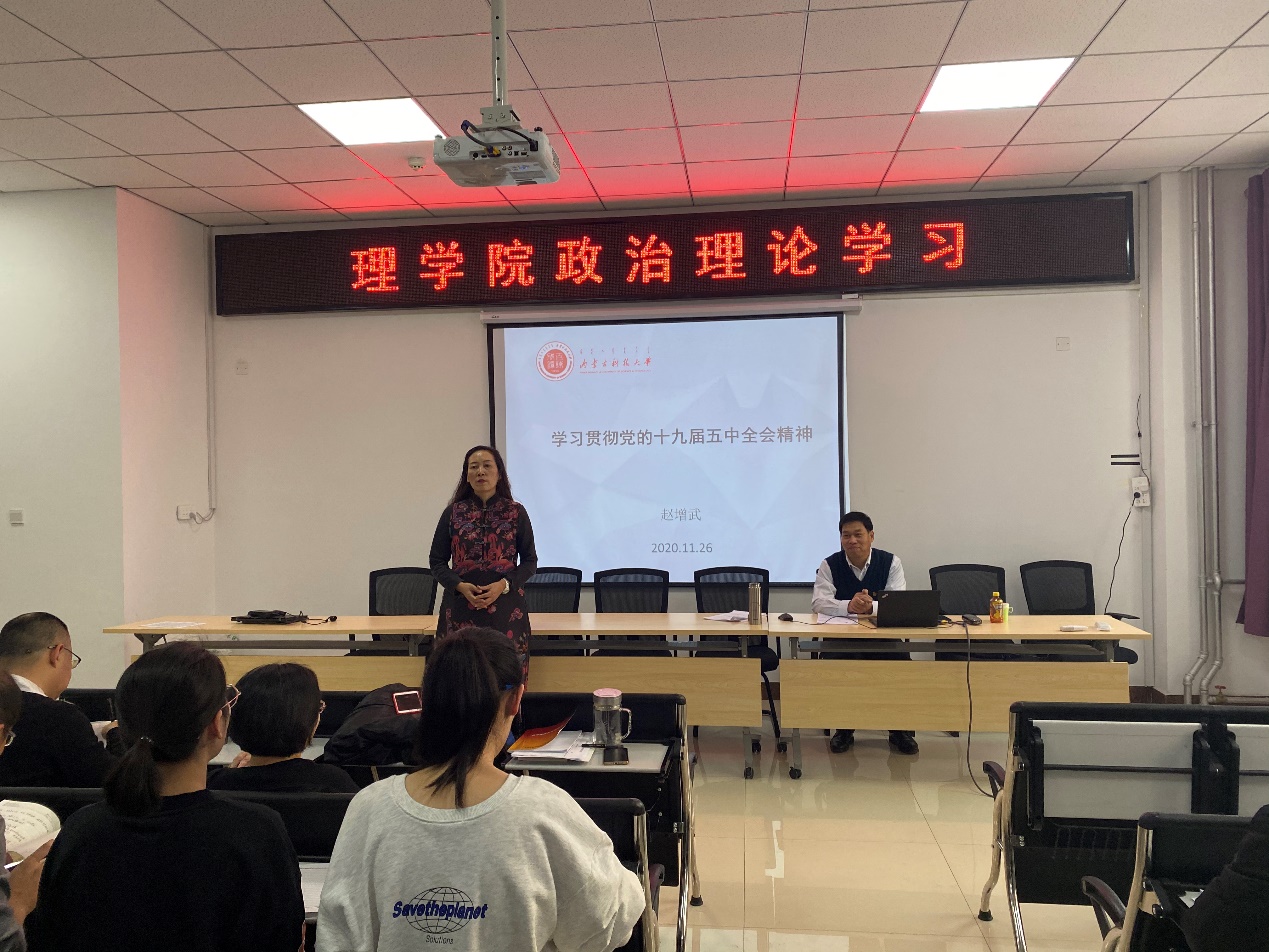 1126日下午2:30,在明德楼E205会议室,永利官网党委委员、副校长赵增武教授为304永利集团全体教师和学生党员作党的十九届五中全会精神宣讲报告。