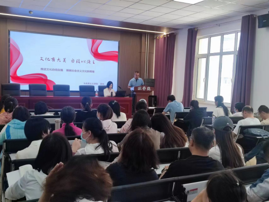宣讲结合主题教育的重大意义与目标要求,从文化自觉、文化自信、文化自强三个层面展开,深入阐述了坚定文化自信、守护文化根脉、实现文化自强的重要性和必要性。宣讲现场气氛热烈,教职工们获得感满满,掌声阵阵。