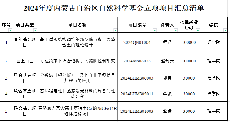 2024年度内蒙古自治区自然科学基金立项项目汇总清单