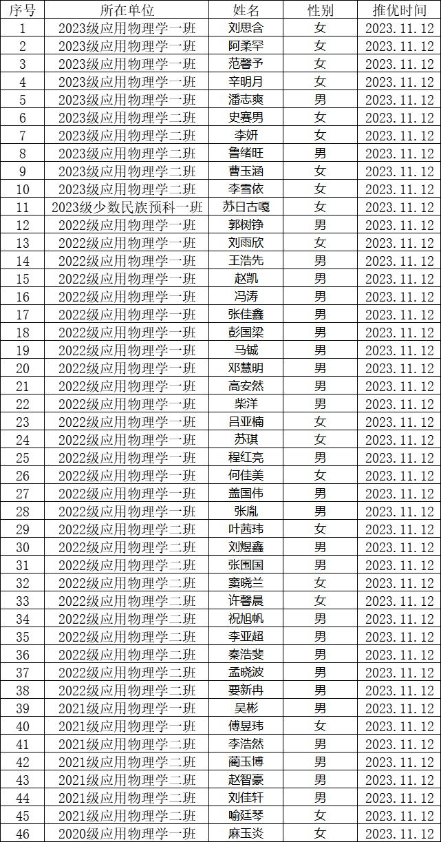 根据《永利官网推荐优秀团员作为入党积极分子工作的实施细则》文件相关规定,经个人申报、班主任,团支书审核、团支部开展民主会议、团总支最终审核决定,拟推荐刘思含等46名同学为304永利集团2023——2024年第一学期推荐优秀团员为入党积极分子,公示日期截止11月15日晚20:00。