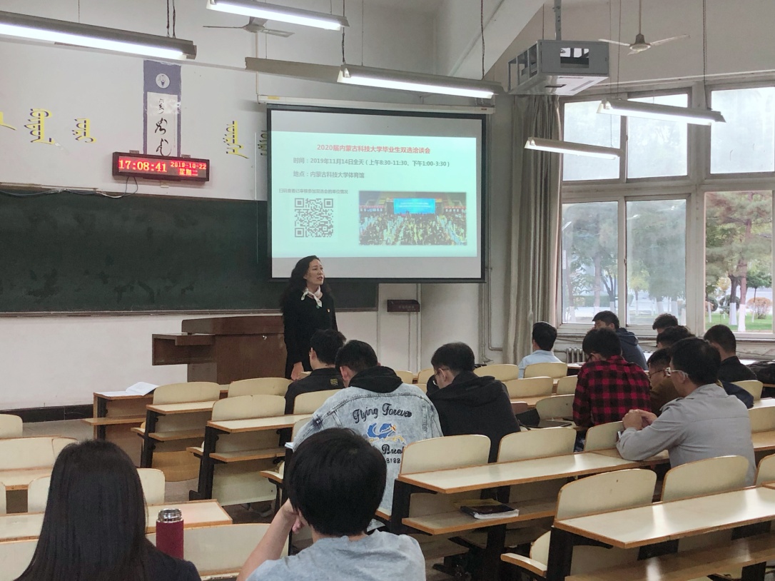 会议开始,罗宁老师介绍了今年就目前为止2020届两个专业毕业班的就业情况和就业方向,相比往年同期有所下降。他鼓励应届毕业生及时把握就业机会,大胆拓宽就业渠道,自信果敢、积极就业。在就业时要完善简历内容,积极参加校内组织的各类企业的宣讲会,尤其是下个月学校即将举办的永利官网毕业生双选洽谈会。