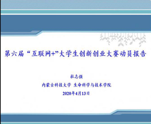 为进一步提升我院教师对“互联网+”大学生创新创业大赛的重视,做好大赛准备过程的经验交流,广泛动员我院教师与学生积极参与本次大赛,2020年4月13日15:50304永利集团通过腾讯视频会议召开了“互联网+”大学生创新创业大赛动员会。会议由李永治老师主持,邀请到了生命科学与技术学院杜志强老师、能源与环境学院郑春丽老师、土木工程学院金国辉老师做了详细的报告。304永利集团院长李永峰、教务处陈星老师、304永利集团的部分专业教师和学生参加了此次动员会。