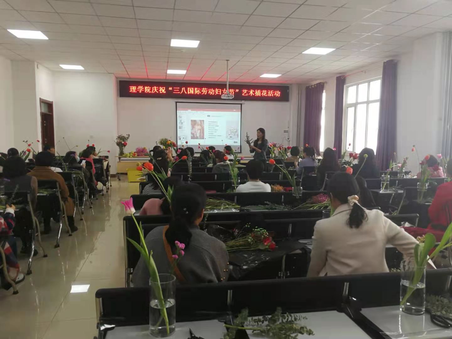本次花艺活动意在培养女教工知美、爱美、尚美、会美的美好生活情趣,美化生活,美化家庭,丰富女教工业余生活爱好,提高她们的生活热情,陶冶她们的情操,让女同事们度过一个有意义的节日。