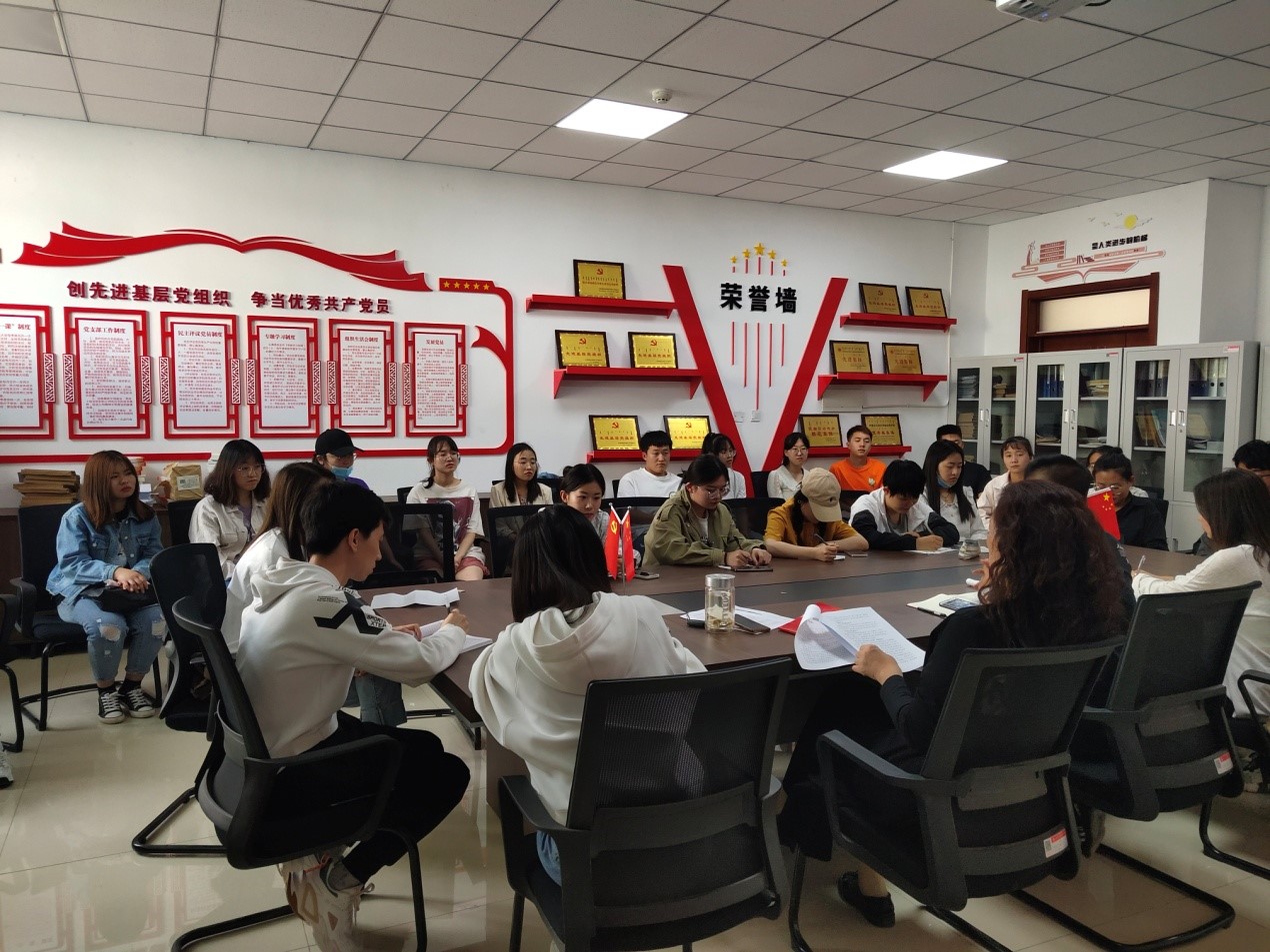 5月25日下午,304永利集团毕业生党员大会在明德楼E202召开。院党委书记杨晓玲、学生第一党支部书记包照日格图老师、分管学生就业的辅导员老师及2021届全体毕业生党员参加会议。