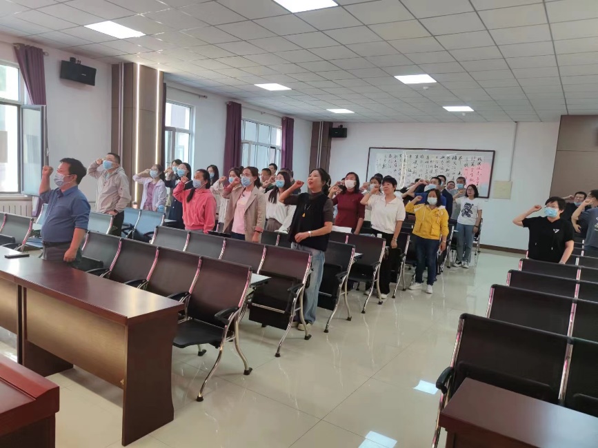 在学院的庆祝大会分会场,各位老师兴致勃勃、热情洋溢地全程观看了大会,与主会场一同起立唱国歌,听取优秀教师和学生慷慨激昂的发言,观看各项优秀奖项的授予。在会议的最后,全体教师起立,跟随主会场的老师一起庄严宣誓。