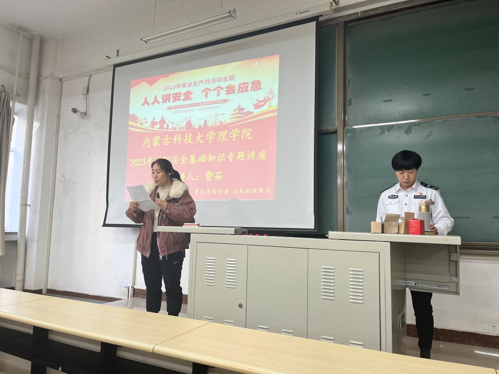 消防安全知识讲座由《中国安全健康教育网》包头教育中心费茹主讲。宣讲结束后,组织负责实验室安全工作的教师和全体团学干部、班团干部、宿舍长进行了消防安全实操演练。