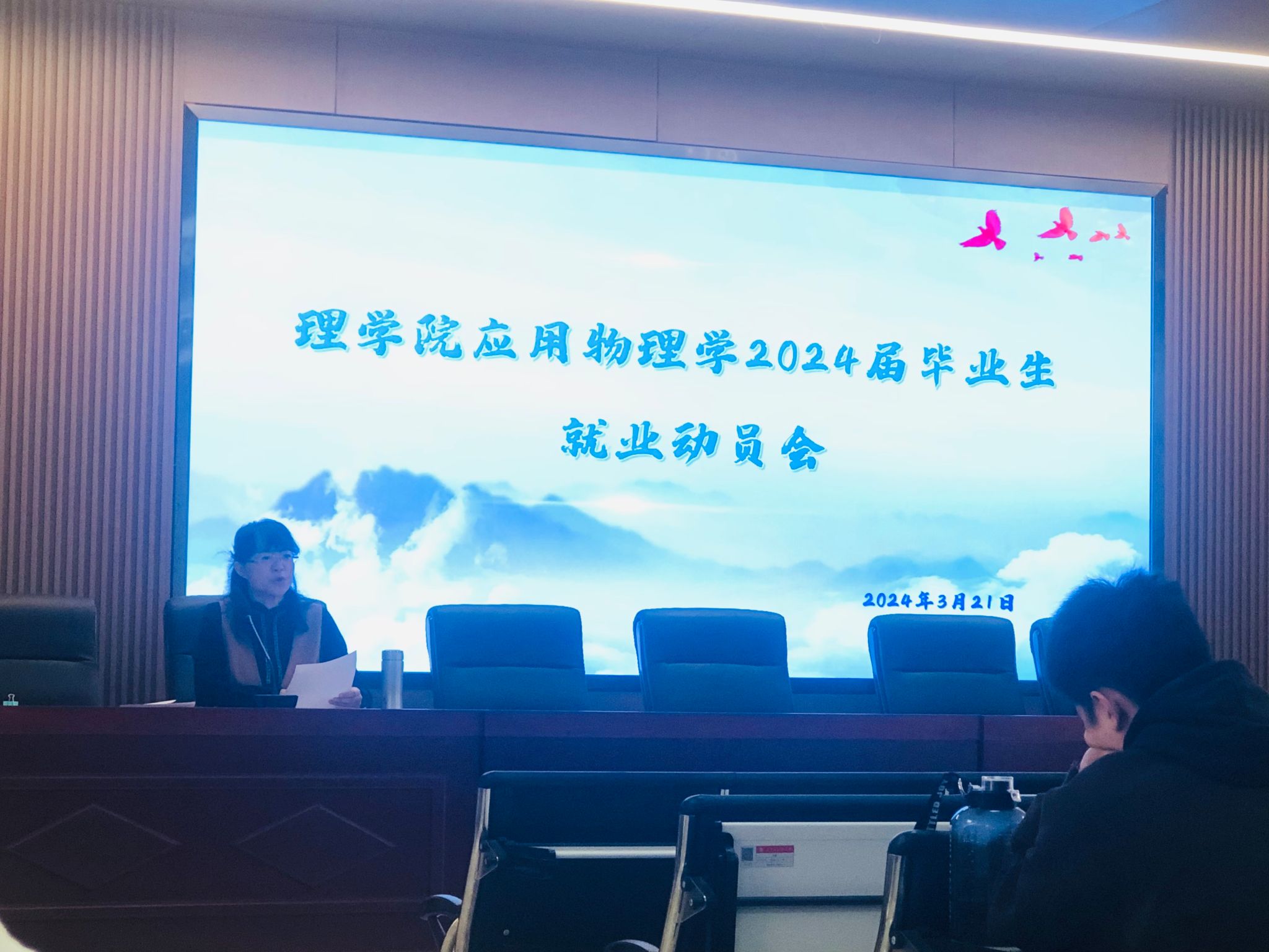为帮助2024届毕业生认识当下就业情形,切实做好就业工作,我院于3月21日上午9:30在明德楼E205会议室召开2024届应用物理学专业毕业生就业动员大会,会议由304永利集团党委副书记副院长武淑琴主持并讲话。