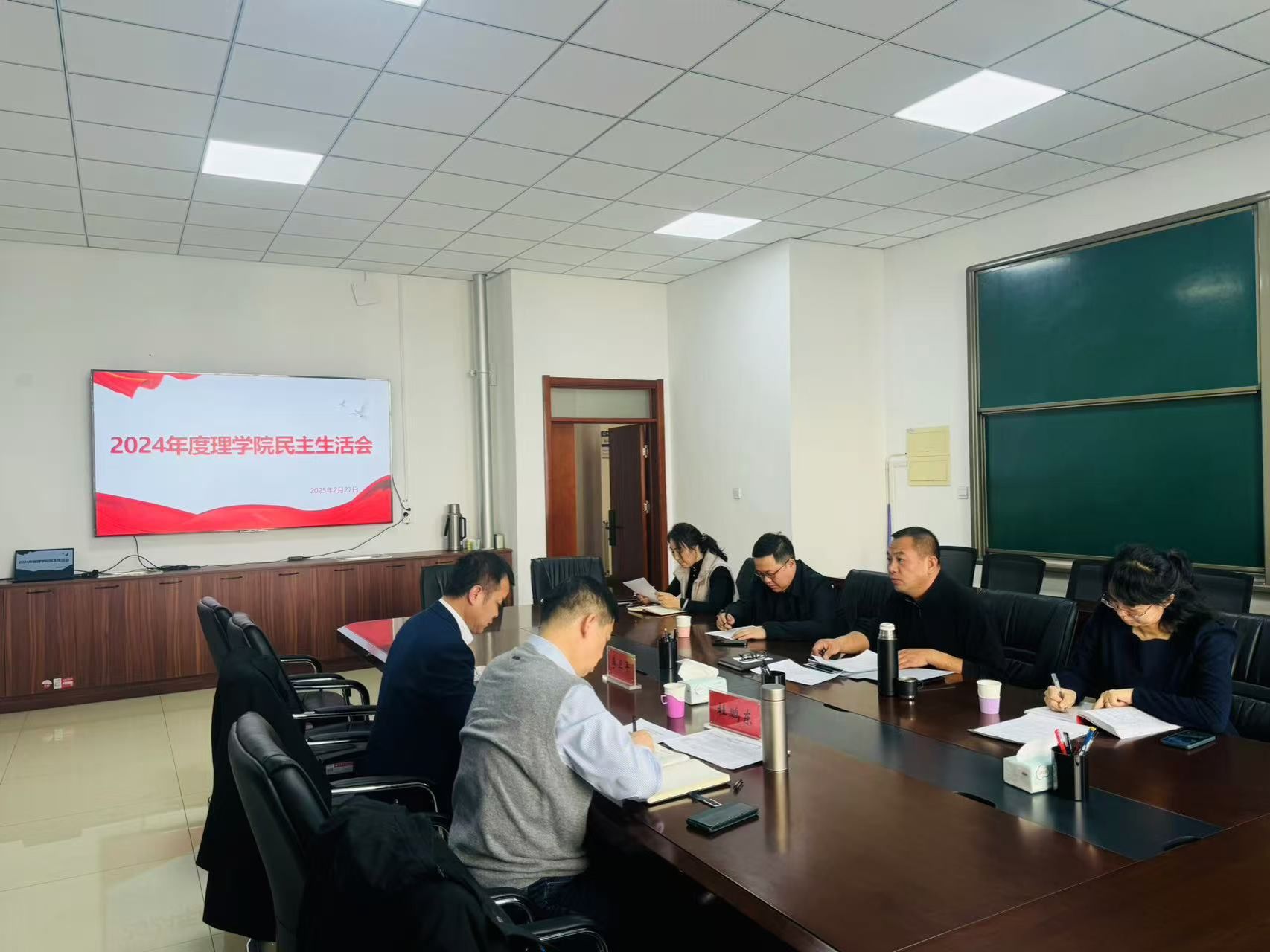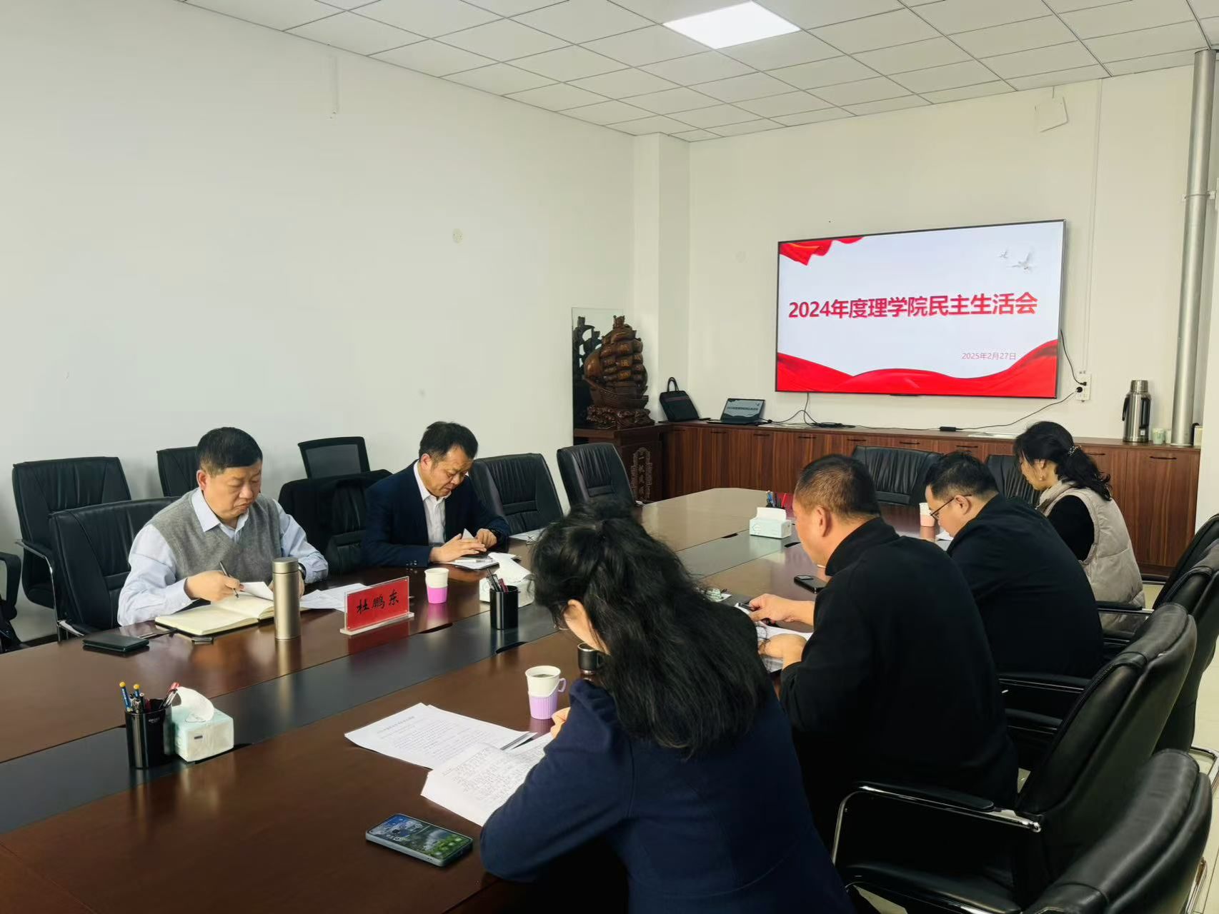 李卫平副校长作点评发言。他指出,本次民主生活会准备工作扎实充分,问题查摆准确深刻,相互批评严肃认真,整改措施务实可行,达到了统一思想、凝聚共识、促进团结、推动工作的目的,是一次高质量的民主生活会。同时,对学院领导班子提出三点建议:一是要结合学院实际制定详细的整改方案,确保问题整改落到实处;二是对于反面典型材料的学习与反思应达到更深层次,避免对错误根源的认识流于表面,确保学院发展环境的纯净与健康;三是以目标为导向,聚焦学科建设、博士点申报、基础课教学质量提升等重点工作,强化系统协调,为推动学校高质量发展贡献力量。杜鹏东处长指出,务必遵循学校党委既定的时间节点,严谨、准时地提交民主生活会的相关材料与报告。
