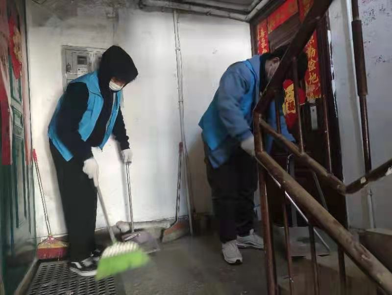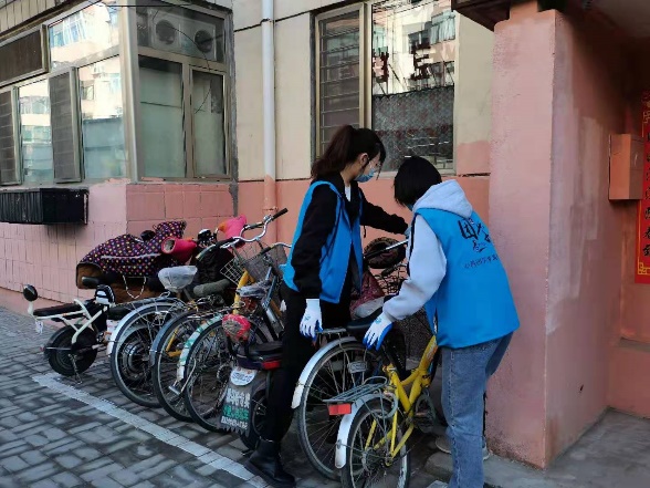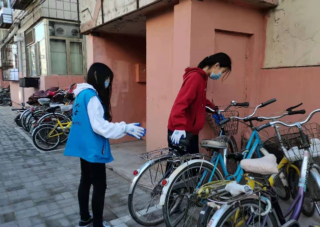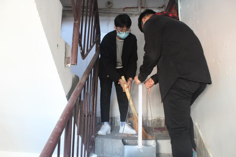 同学们在友谊17社区工作人员的带领下,分工明确,各司其职,积极热情地参与其中,大家手拿扫帚簸萁,带上卫生手套积极投入劳动当中,对道路及两旁进行清扫,对居民楼下停靠电动车、自行车进行摆放、对居民楼楼道卫生进行打扫,对垃圾进行规划,将垃圾箱合理摆放等,为创城迎检注入强劲动力。