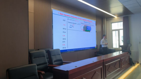 讲座中,成昭华研究员围绕拓扑绝缘子异质结构的各向异性旋转动力学,从旋转动态时间尺度上的主要磁相互作用、磁阻尼的重要性、磁阻尼的操控、各向异性阻尼、各向异性自旋弛豫时间五个核心方面展开详细讲解,结合理论模型与实验验证,系统梳理了该领域的关键科学问题与技术突破方向。