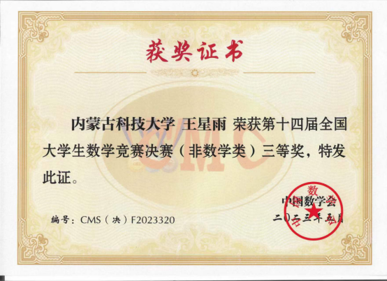 2023年5月26日-28日,第十四届全国大学生数学竞赛决赛在广东工业大学举行,经过三天的激烈角逐,由304永利集团张红霞副教授指导的我校土木工程学院学生王星雨勇夺全国三等奖。