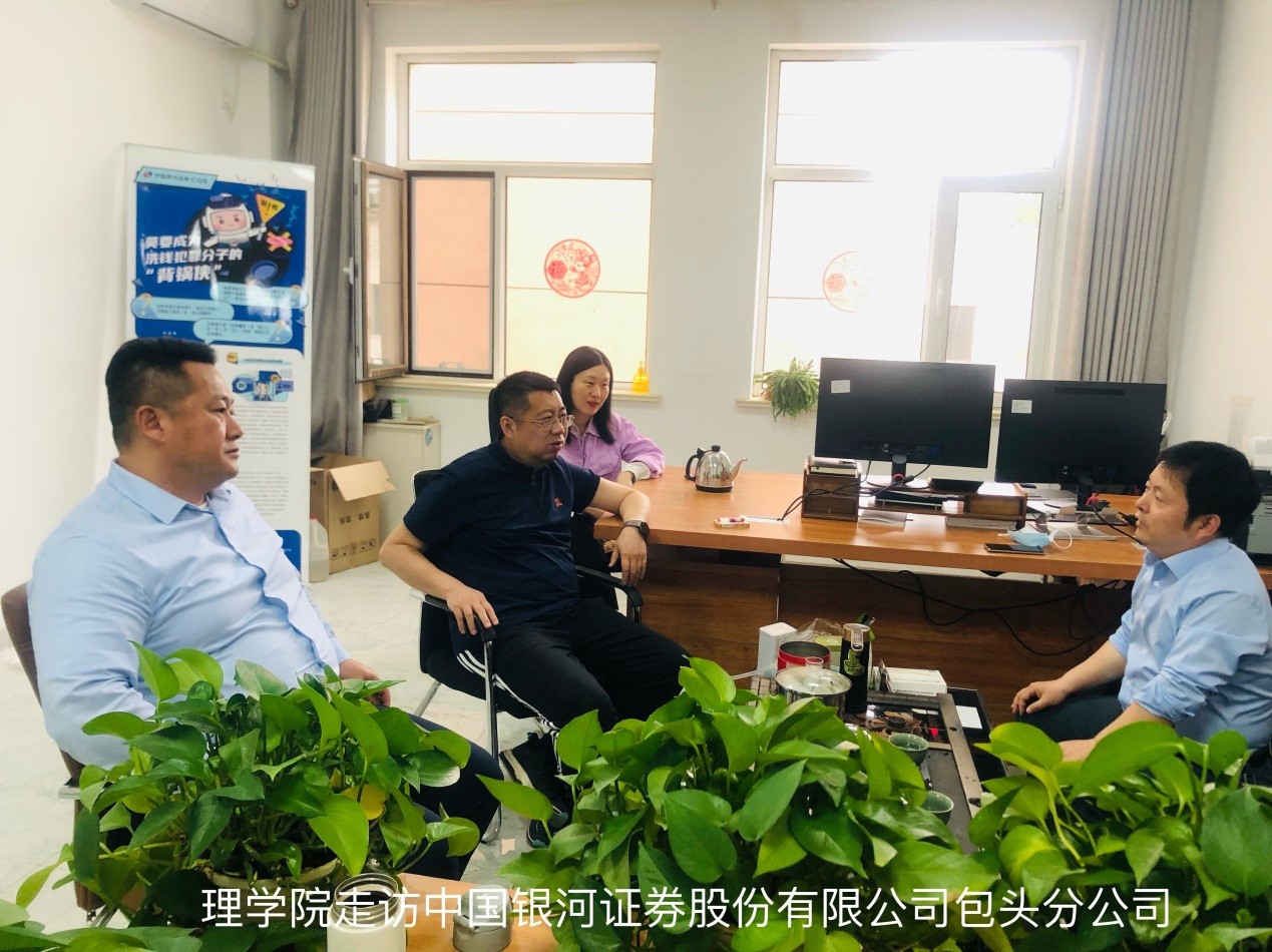 为进一步落实“访企拓岗促就业”专项行动工作方案,为我院毕业生提供更多的就业岗位和机会,5月16日下午17:00我院党委副书记兼副院长罗宁、副院长马永红、辅导员江凡璐实地参观走访了中国银河证券股份有限公司包头分公司。中国银河证券股份有限公司包头营业部总经理赵利斌及副总经理郭海东热情接待了我院一行。